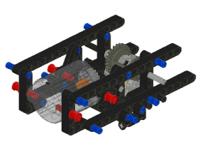 I like motorized LEGO very much, but one thing I don't like is grinding gears, which occur when a drivetrain isn't constructed solid enough. The torque of the motor causes the gears to come apart, creating an awful clicking noise and reducing driving power. This mostly happens in a transversive gearing, since they have only a small surface to transfer the power. LEGO® has make an excellent part for this: the knob-wheel